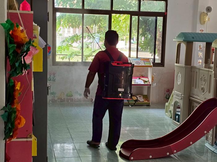 วันที่ 16 กรกฎาคม 2568 งานสาธารณสุขและสิ่งแวดล้อมองค์การบริหารส่วนตำบลหนองคูขาด ได้รับรายงานจากโรงพยาบาลส่งเสริมสุขภาพตำบลบ้านโสกภารา พบผู้ป่วยด้วยโรค มือ เท้า ปาก(HFM) จำนวน 2 ราย และสงสัยป่วย 5 ราย กำลังเรียนที่ศูนย์พัฒนาเด็กเล็กบ้านโสกภารา จึงได้ดำเนินการออกควบคุมโรคไม่ให้เกิดการแพร่ระบาดในโรงเรียน โดยการฉีดพ่นยาฆ่าเชื้อ และทำความสะอาดศูนย์พัฒนาเด็กเล็กฯ และทำการปิดเรียนตั้งแต่วันที่ 17 - 20 กรกฎาคม 2568